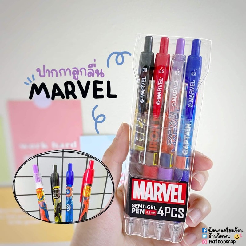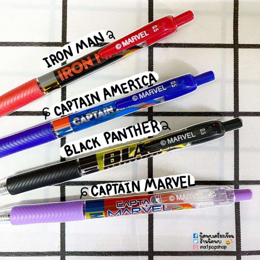 "description": "<p>ปากกาลูกลื่นกึ่งเจล ลาย marvel </p>\r\n<ul>\r\n<li>หัวขนาด 0.5 มม.</li>\r\n<li>ปากกาหมึกน้ำเงิน</li>\r\n<li>ด้ามจับถนัดมือ</li>\r\n<li>สีสันสดใส </li>\r\n<li>มีหลายตัวละครให้เลือก</li>\r\n<li>มีทั้งหมด 4 สี ดำ แดง น้ำเงิน ม่วง</li>\r\n</ul>\r\n<p><span data-key=\"46\">#มาร์เวล #marvel #ปากกาลูกลื่น #marvelpen #ปากกา #รีวิวปากกา #นัดพบเครื่องเขียน </span><span data-key=\"49\">#รีวิวเครื่องเขียน #รีวิวมข#รีวิวขอนแก่น#เครื่องเขียนขอนแก่น#เครื่องเขียน#studygram#studygramthailand#dek62#dek63#dek64 </span><a><span data-key=\"53\">#เครื่องเขียน</span></a></p>",