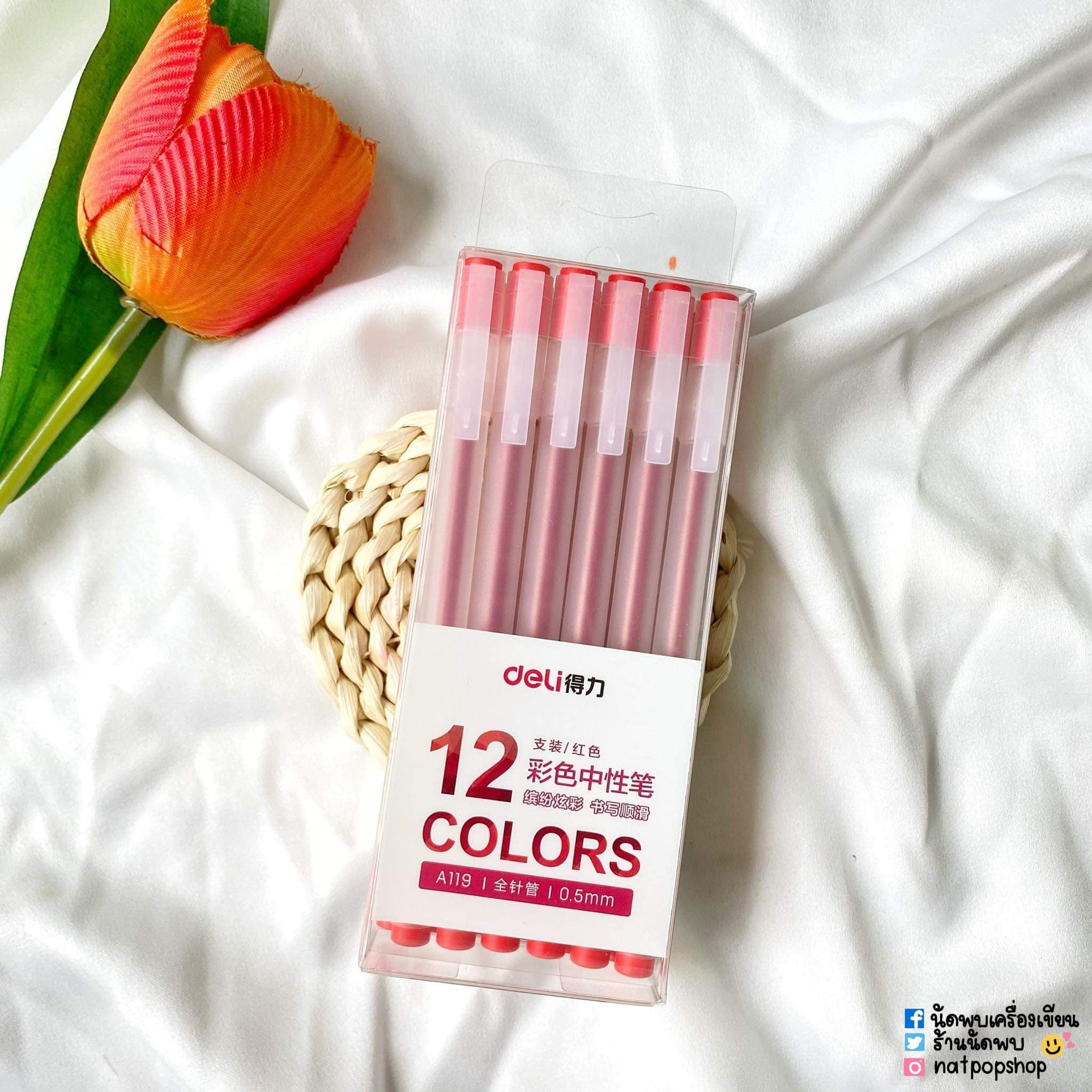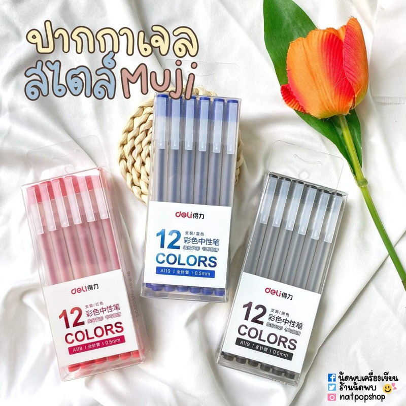 "product_title": "ปากกาเจล deLi สไตล์ Muji 0.5 mm (กล่อง 12 ด้าม)",