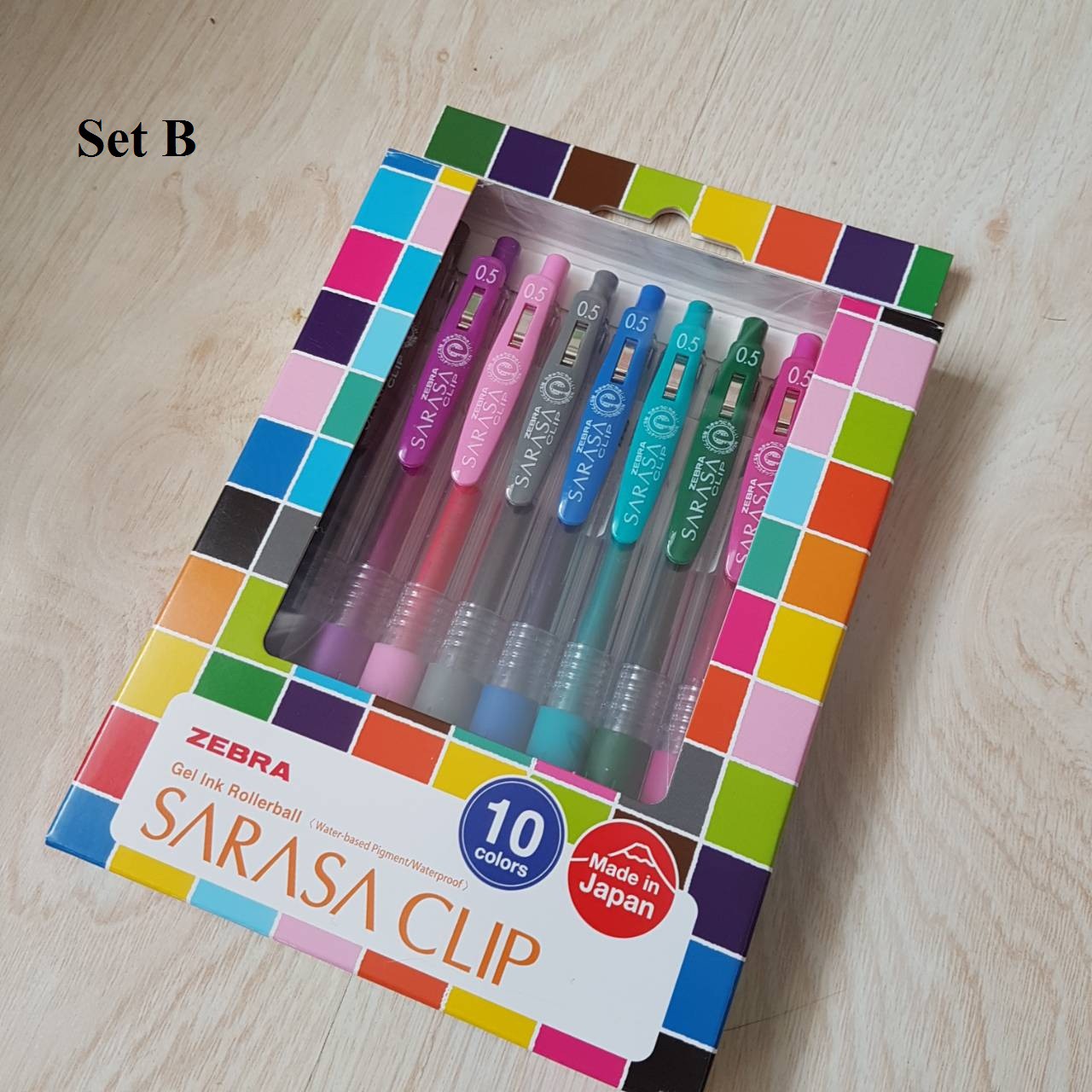 "description": "<p>ปากกาหมึกเจล Zebra Sarasa Clip Neon Color<br />น้ำหมึกสีสดใส มีให้เลือกหลายสี<br /><br />มี 2 Set<br />Set A <br />Set B</p>",
