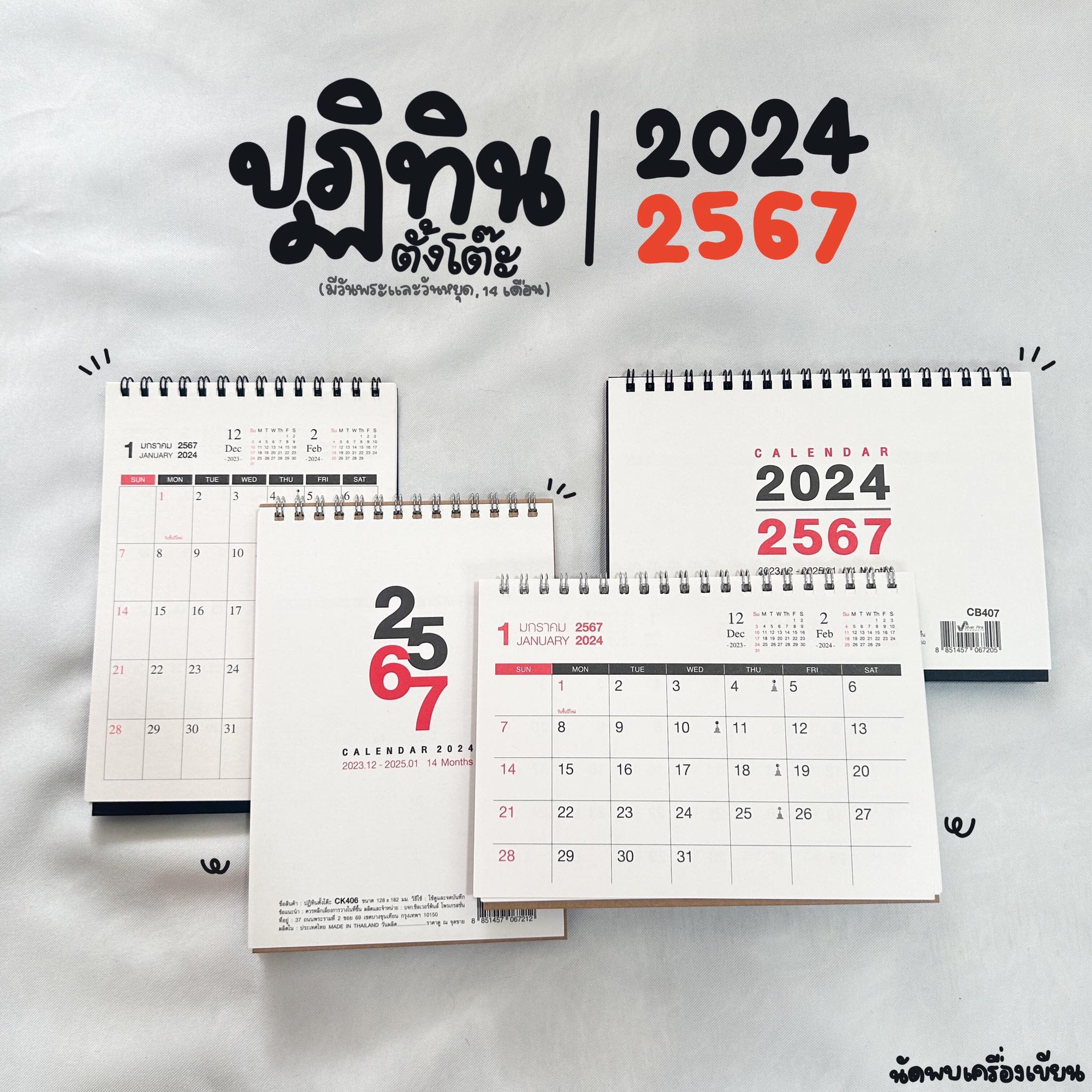 "product_title": "ปฎิทิน 2567 ปฏิทินตั้งโต๊ะ calendar 2567/2024 14 เดือน มีวันหยุดไทย มีวันพระ",
