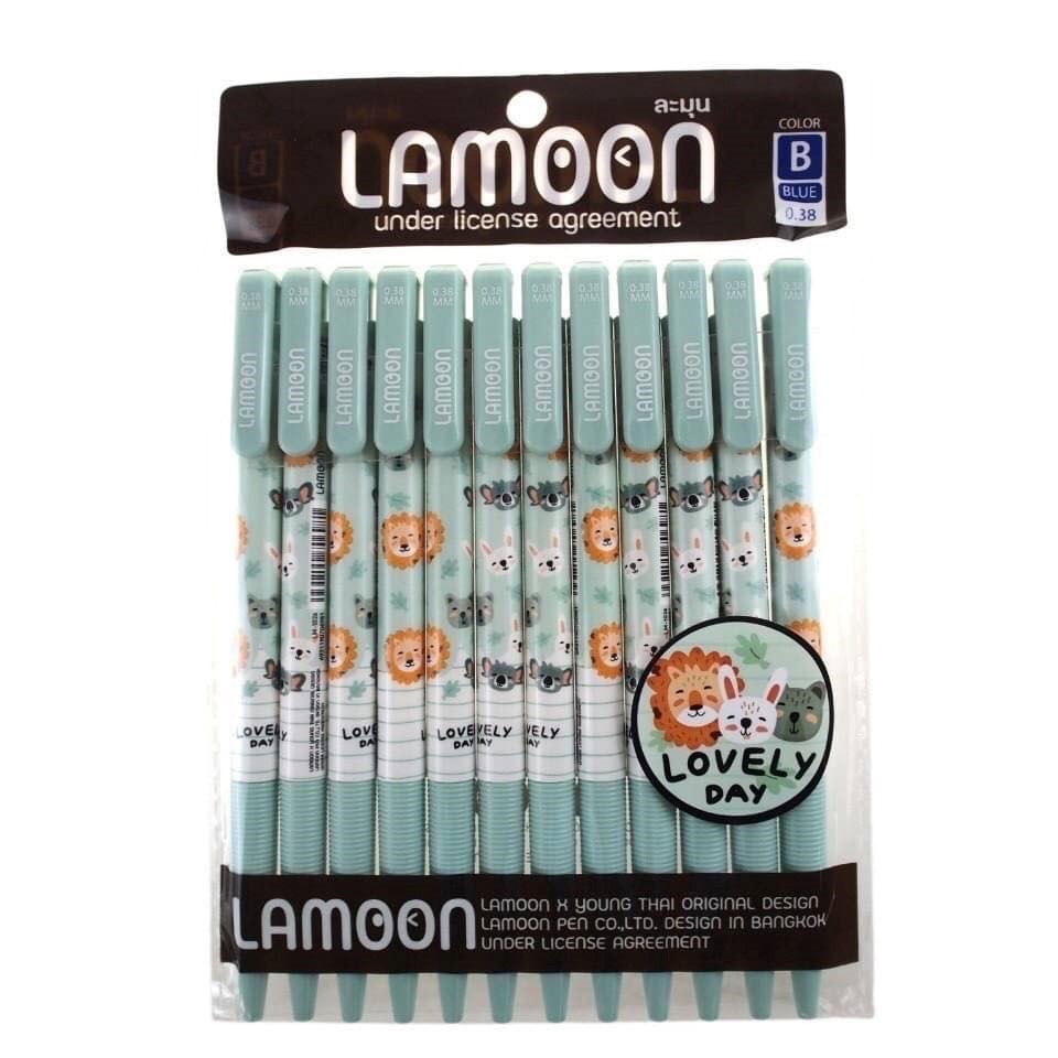 "title": "ปากกาลูกลื่น หมึกน้ำเงิน LAMOON หัว 0.38 MM แบบแพ๊ค",