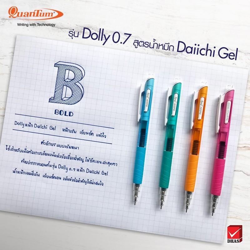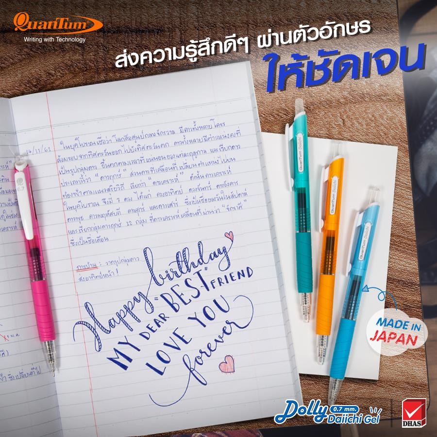 "product_title": "ปากกา Quantum Dolly Daiichi Gel 0.5 mm กับ 0.7 mm",