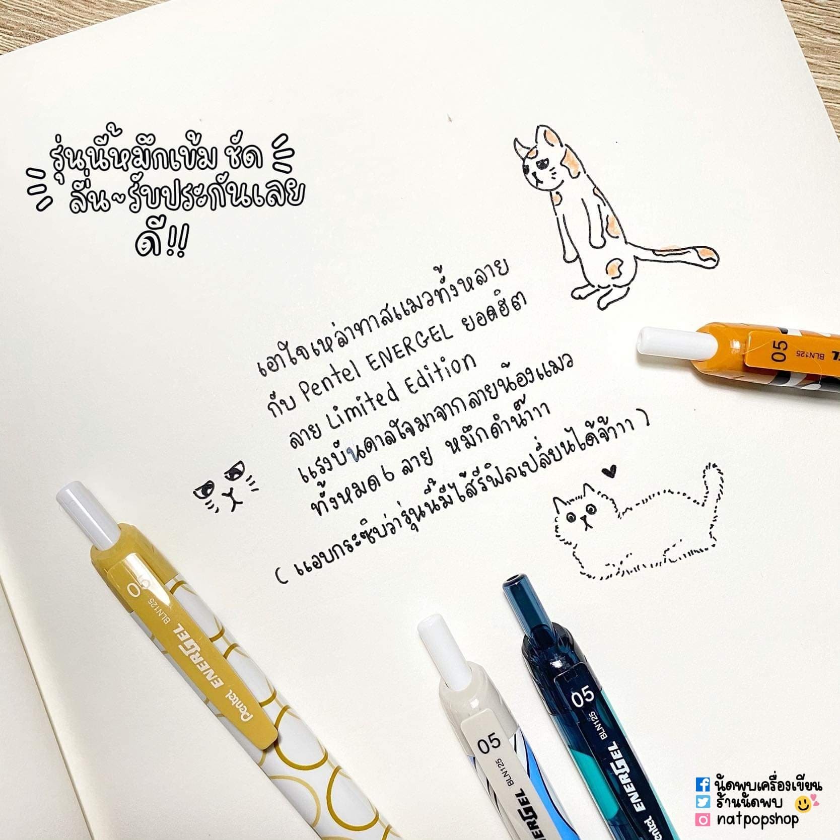 "description": "<p>Pentel Energel Neko 0.5 mm</p>\r\n<ul>\r\n<li>ปากกาหมึกเจล Pentel Energel หมึกเจลสีดำ</li>\r\n<li>รุ่น NEKO</li>\r\n<li>มีคลิปหนีบสำหรับพกพา</li>\r\n<li>สามารถถอดเปลี่ยนไส้ปากกาได้</li>\r\n<li>ผลิตและนำเข้าจากประเทศญี่ปุ่น</li>\r\n<li>ขนาดหัวปากกา 0.5 มม.</li>\r\n<li>มีให้เลือก 6 ลาย</li>\r\n</ul>\r\n<p>#นัดพบเครื่องเขียน #รีวิวเครื่องเขียน #รีวิวปากกา #ปากกาเพนเทล #pentel #pentelthailand #neko #pentelneko #energel #energelneko #studygram #studygramthailand #dek62 #dek63 #dek64 #ปากกาหมึกเจล #หมึกเจลแห้งไว #รีวิวขอนแก่น #รีวิวมข #เครื่องเขียนขอนแก่น #เครื่องเขียน</p>",