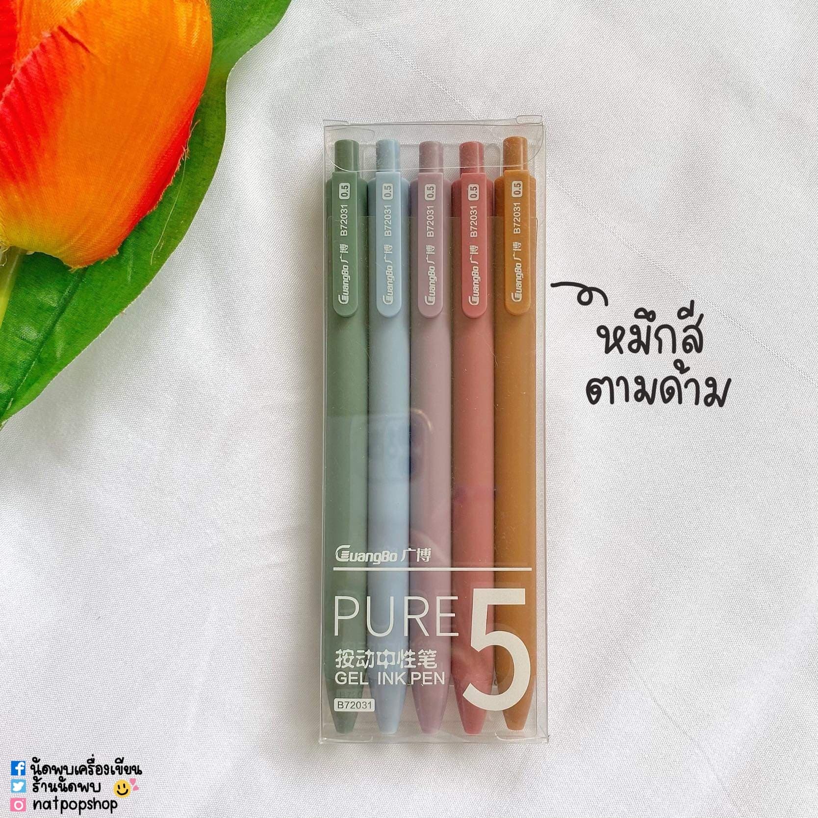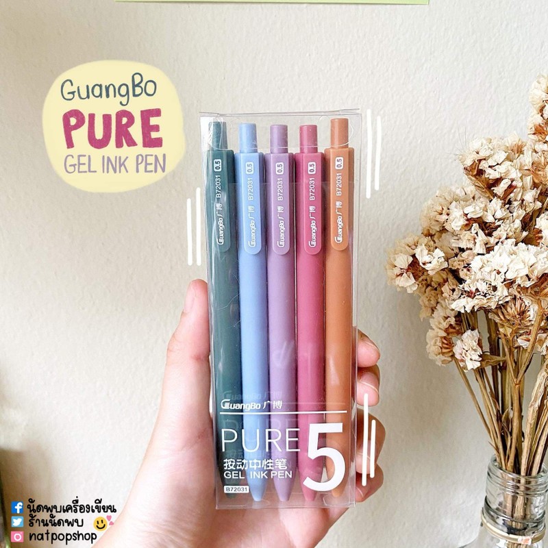 "description": "<p>ชุดปากกาเจลสี GUANGBO PURE VINTAGE TONE</p>\n<ul>\n<li>ปากกาหมึกเจลสีตามด้าม</li>\n<li>ขนาดหัว 0.5mm</li>\n<li>1 ชุด มี 5 ด้าม</li>\n</ul>\n<p>#นัดพบเครื่องเขียน #รีวิวเครื่องเขียน #รีวิวปากกา #ปากกาเจล #purepen #ปากกาpure #studygram #studygramthailand #dek62 #dek63 #dek64 #รีวิวขอนแก่น #รีวิวมข #รีวิวหลังมข #stationery #เครื่องเขียน #เครื่องเขียนขอนแก่น</p>",