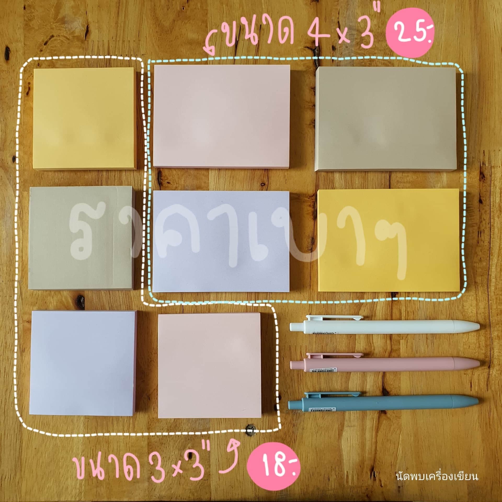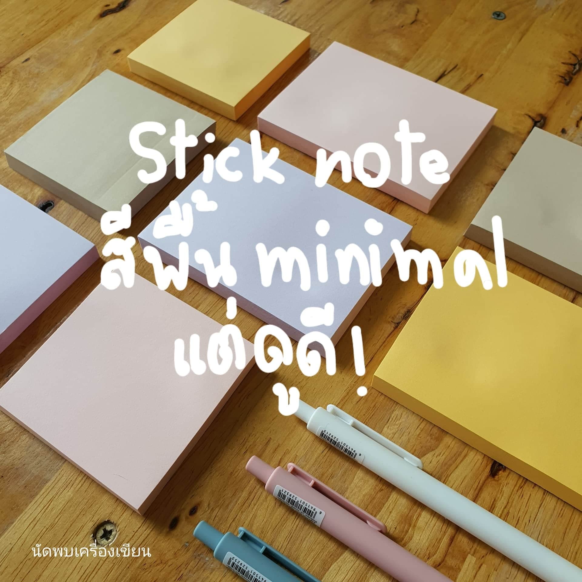 "description": "<p>Stick Note สไตล์มินิมอล</p>\n<ul>\n<li>มีให้เลือก 2 ขนาด 3x3นิ้ว กับ 3x4 นิ้ว</li>\n<li>1 แพ็ค มี 100 แผ่น</li>\n<li>มีให้เลือก 4 สี</li>\n</ul>",
