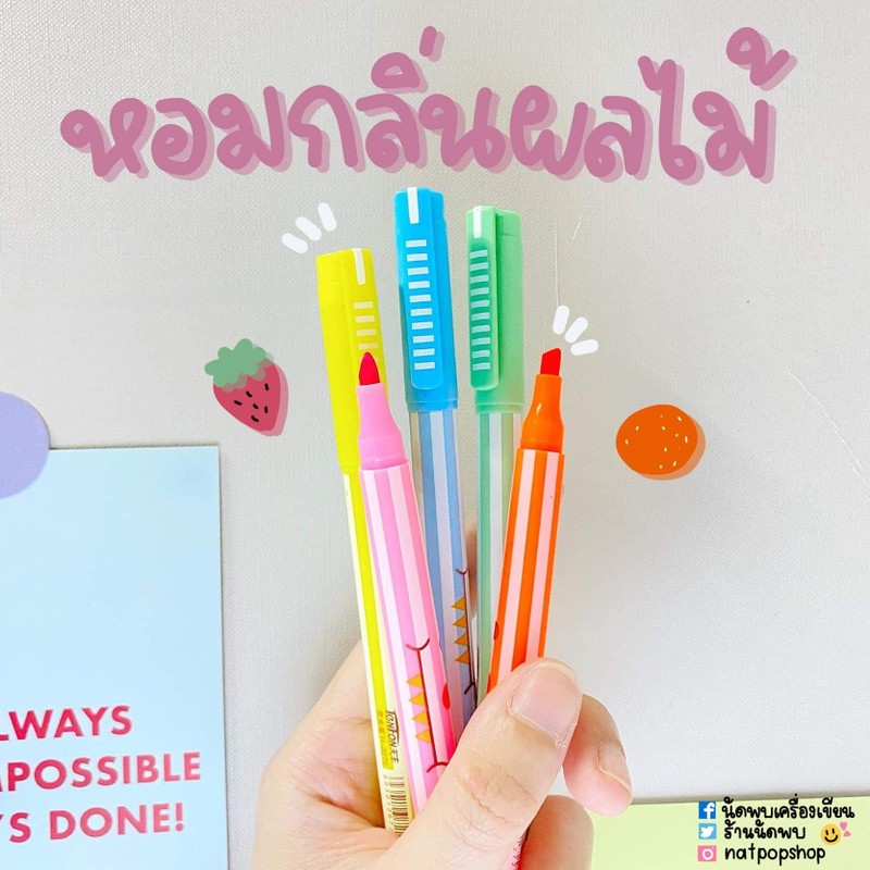 "title": "ปากกาเน้นข้อความหอมกลิ่นผลไม้",